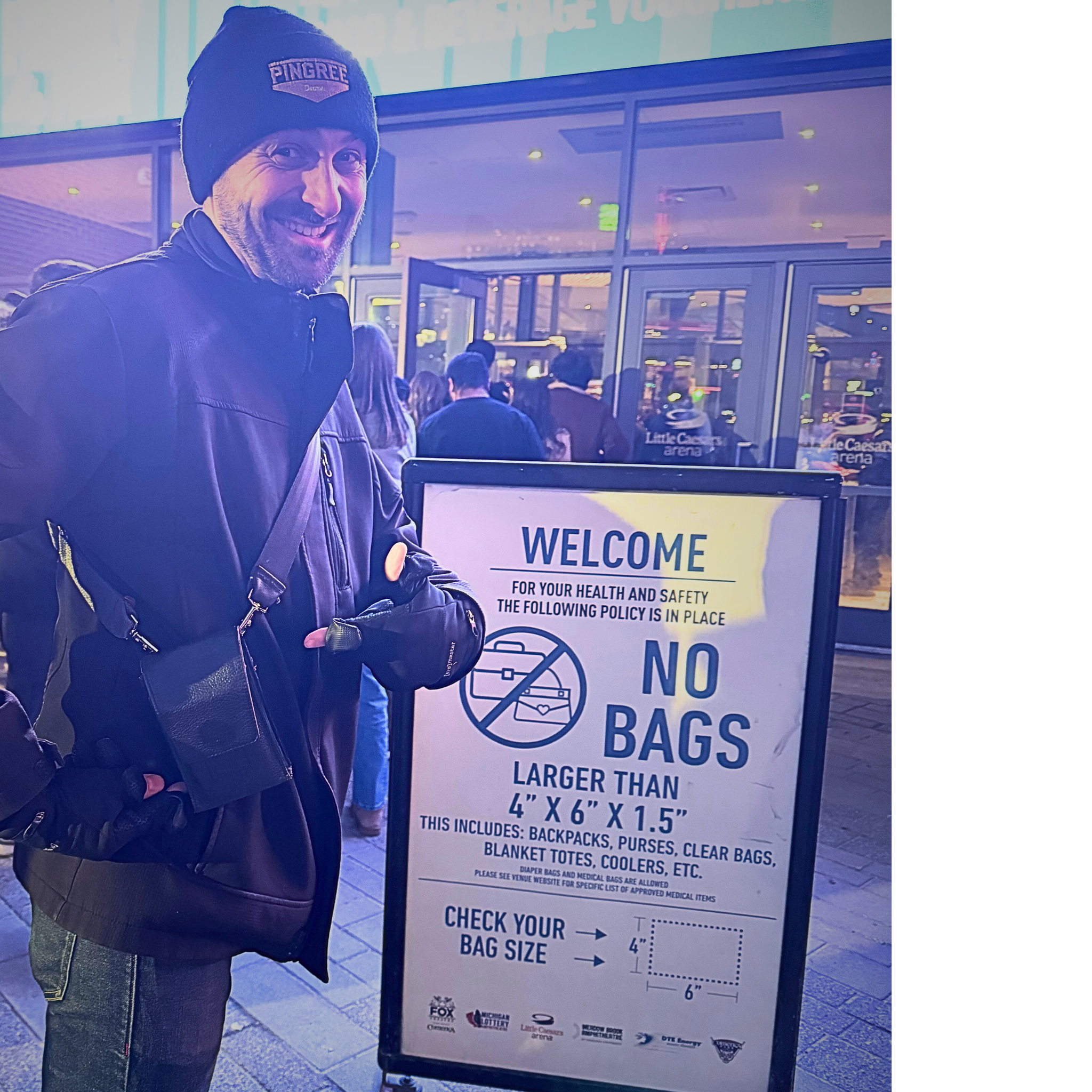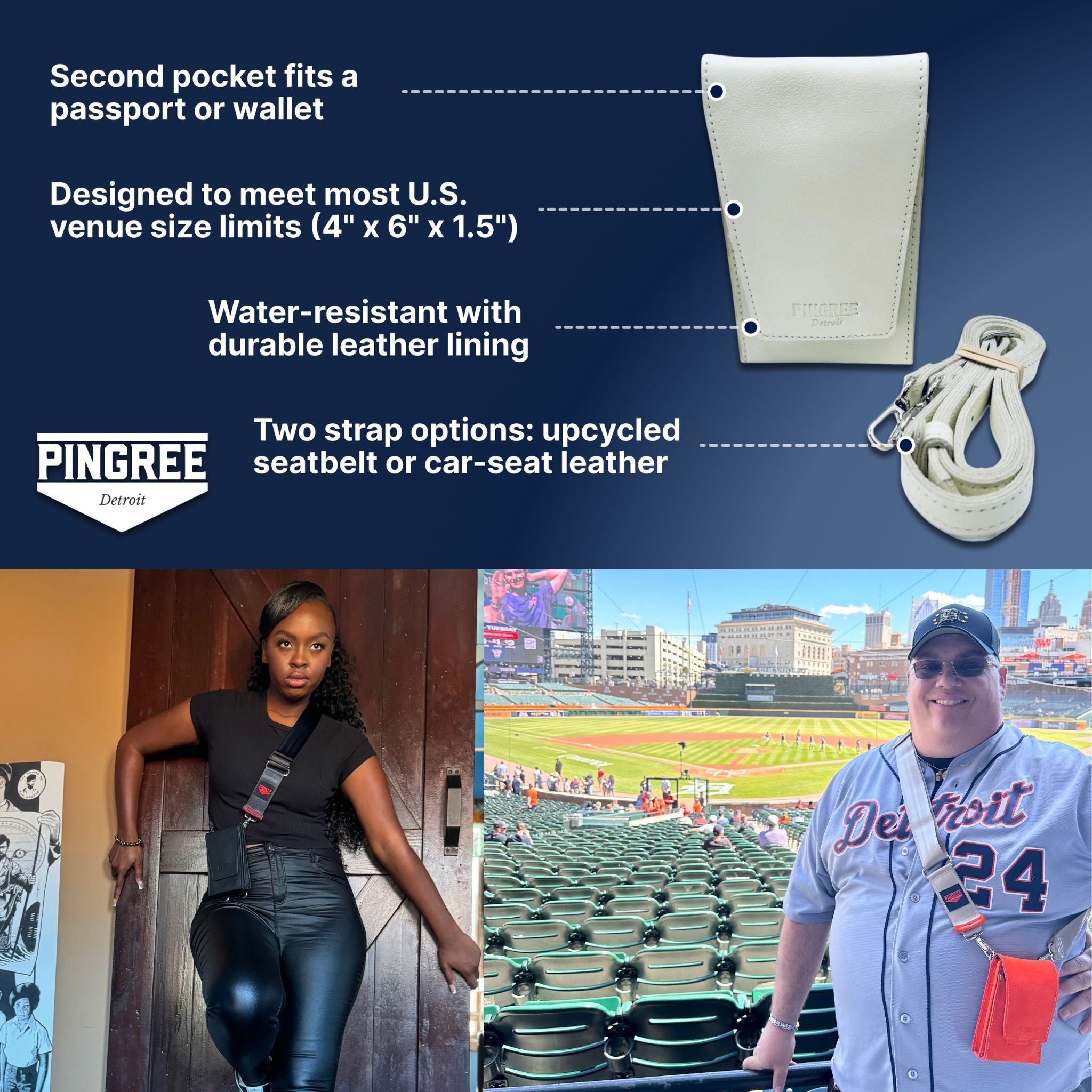 Size Matters: Many sports and concert venues across the USA only allow bags smaller than 4” x 6” x 1.5” - the exact size of our bag. However, some phones are taller, so the Motown Venue Bag (MVB) is expandable in height and depth. - I.e. Ford Field allows a 4.5x6.5 into Lions Games-